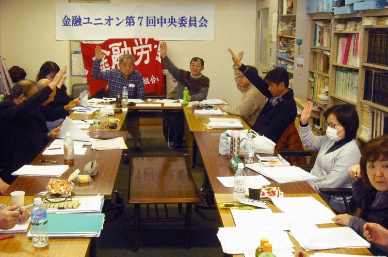 東京都内で開催された金融ユニオン第7回中央委員会には、全国から中央委員・役員・オブザーバーが参加し、春闘方針・新年度役員定数・当面のとりくみなどを決定しました。